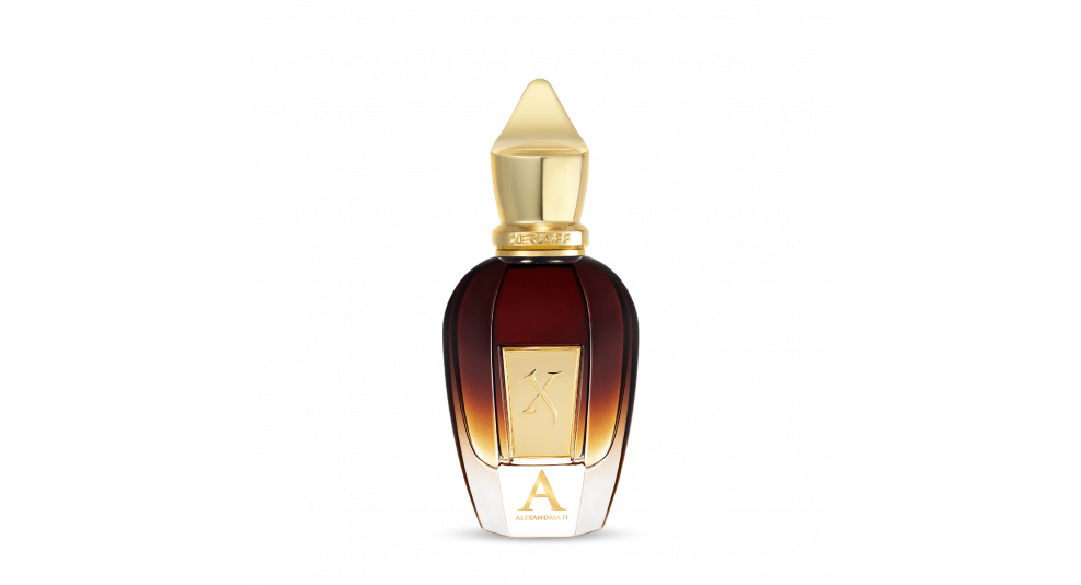 Alexandria II Xerjoff si apre con sentori fruttati di mela che incontrano la lavanda floreale e il legno di rosa, per poi sfociare in un cuore classicamente orientale di legno di cedro, mughetto e rosa bulgara.