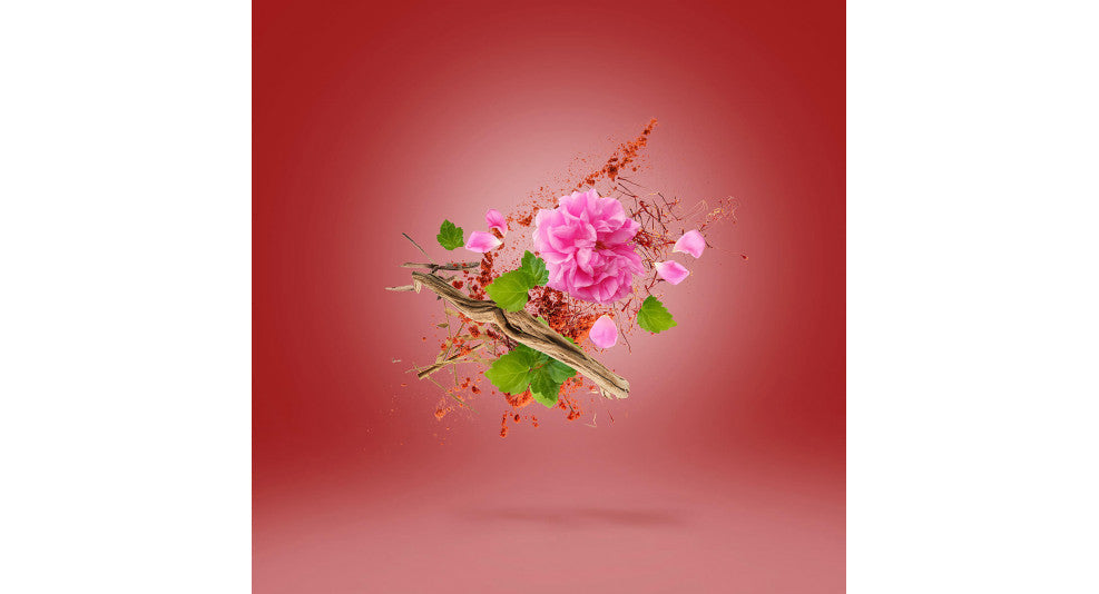 - Zafferano spagnolo, legno di cedro e patchouli, rosa bulgara